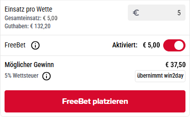 4. Die FreeBet ist nun aktiv. Du kannst es über den roten Button "FreeBet platzieren" spielen.